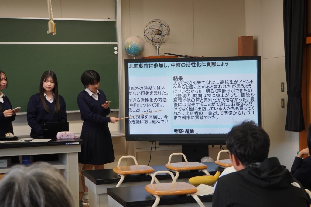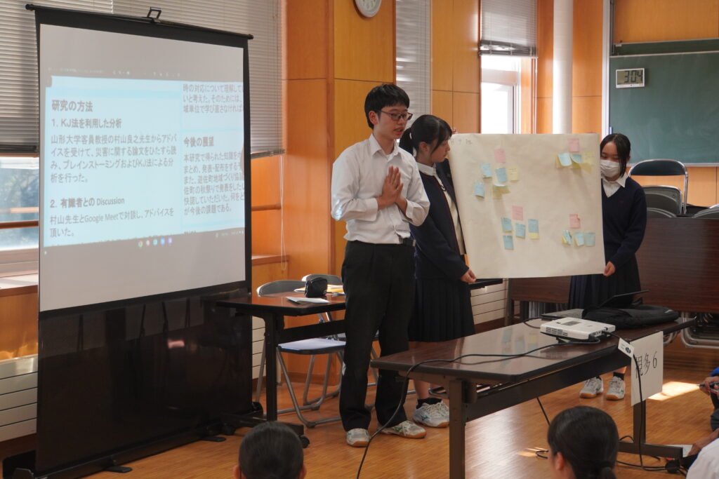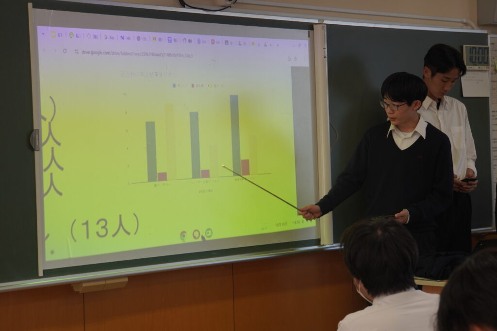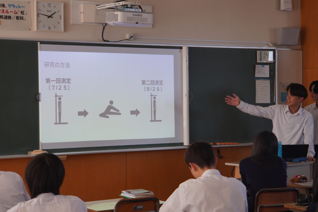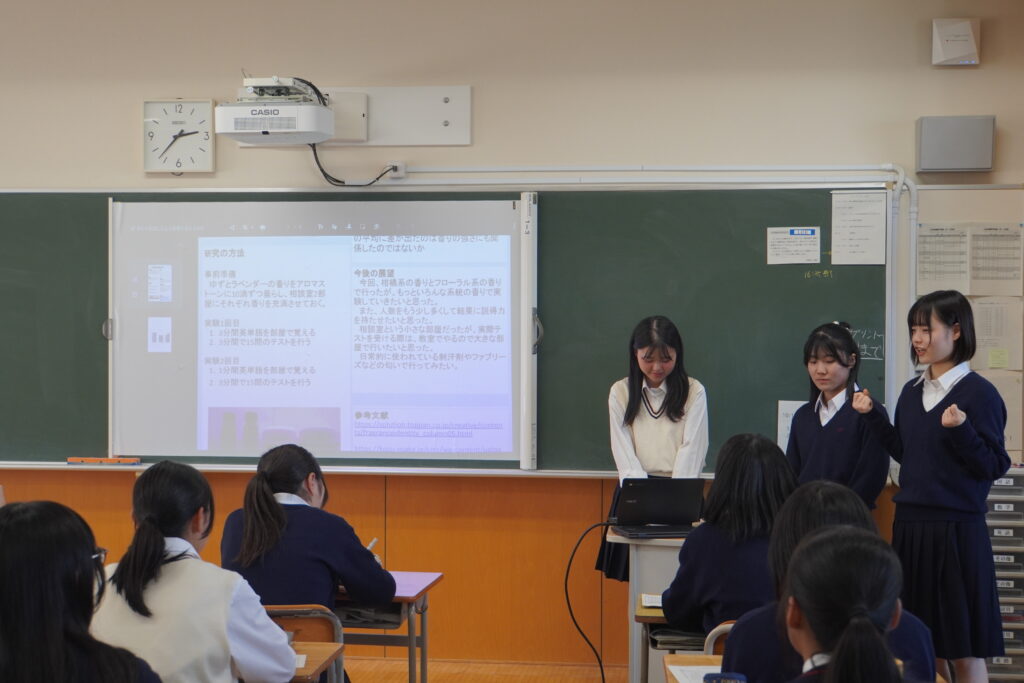 課題研究中間発表会が行われ、2年次生が4月から取り組んできた研究のこれまでの成果を発表し、多くの方々に参観いただきました。伝わりやすく工夫が見られた班が多かったように思います。