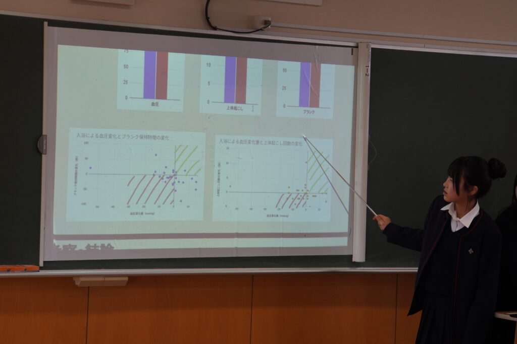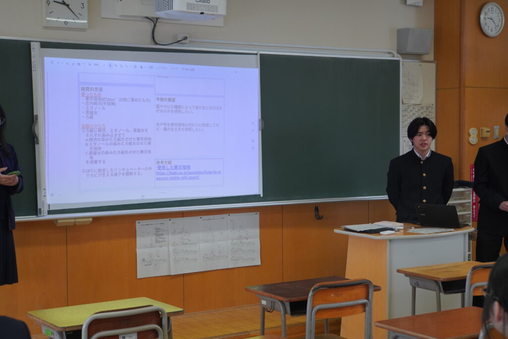 国語・英語・文学、歴史・文化・現代社会、物理、化学、生物、数学・情報、健康・保健の各分野に分かれて49班が発表しました。