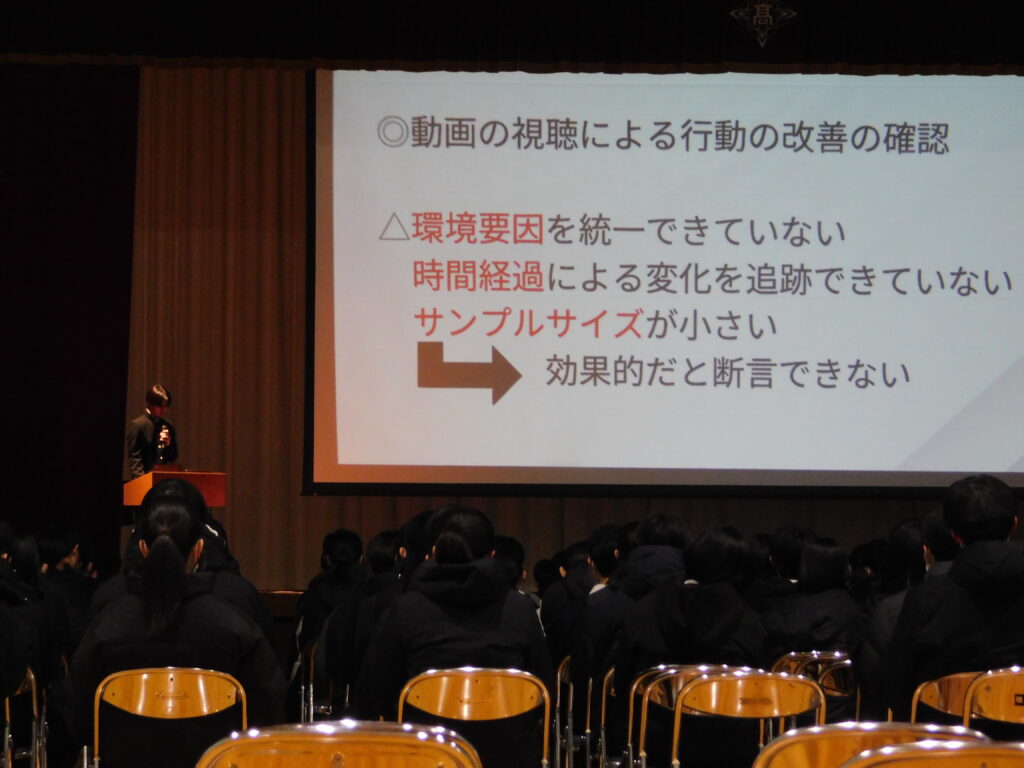 全体を前に発表する緊張感がありながらも、堂々と発表してくれました。